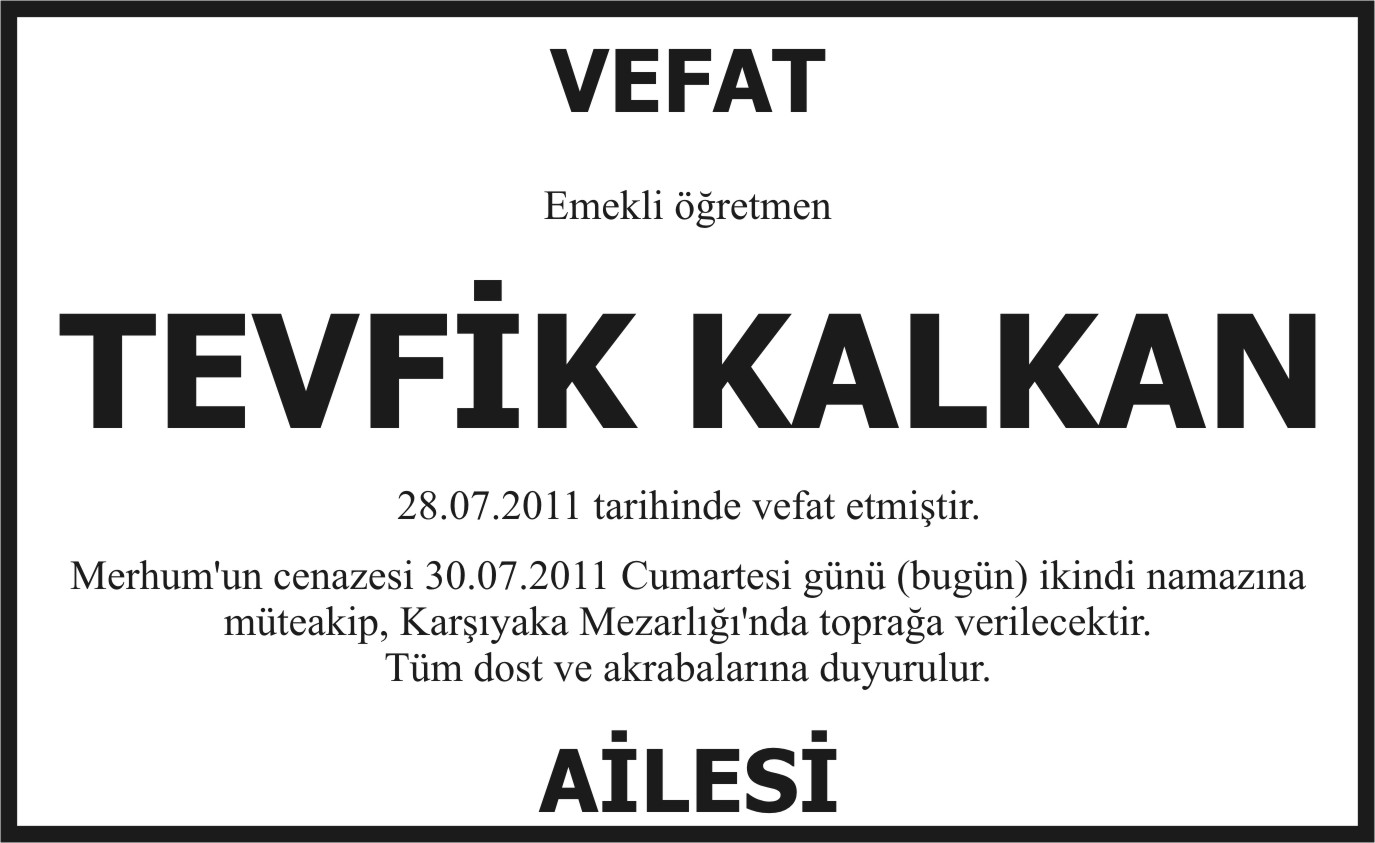 Vefat için Ölüm İlanları beklenen yada aniden gelişen herhangi bir sebepten dolayı ölmüş kişilerin vefaatında üzüntülü telaşe ile konu komşu akraba ve dostların haberdar edilmesi için verilir. Ertesi gün (yarın) cenaze defin işlerinin yapılacağından dolayı hemen verilmesinde fayda vardır. Vefat ilanlarının ücretleri biraz pahalıdır. Ama gazete reklamından da daha ucuzdur. Hürriyet veya diğer (Sabah, Milliyet, Cumhuriyet, Zaman gibi) gazetelerde tamamen Duyuru amacı ile neşredilir. Kamu oyuna, Yakın veya Uzak Akrabalara, Ölen kişilerin Arkadaşlarına ve Dostlarına Haber verme bağlamında verilen sosyal ilan şeklidir.